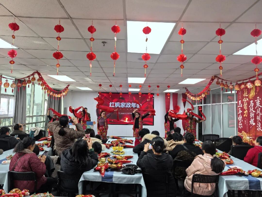 为感谢家人们一年的辛勤付出,迎接新年到来,2月12日,红枫家政部分家政服务人员代表在巾帼大厦5楼举办了温馨热闹的年会活动。