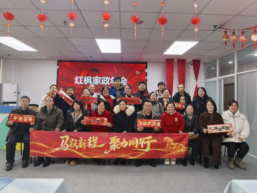 为感谢家人们一年的辛勤付出,迎接新年到来,2月12日,红枫家政部分家政服务人员代表在巾帼大厦5楼举办了温馨热闹的年会活动。